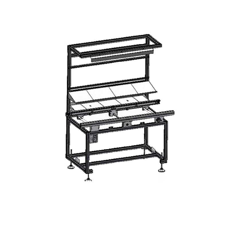 The YXD C140SL TNT component installation conveyor is equipped with a chain conveyor, a backlight lamp, and shelves for storing components for manual mounting on printed circuit boards.