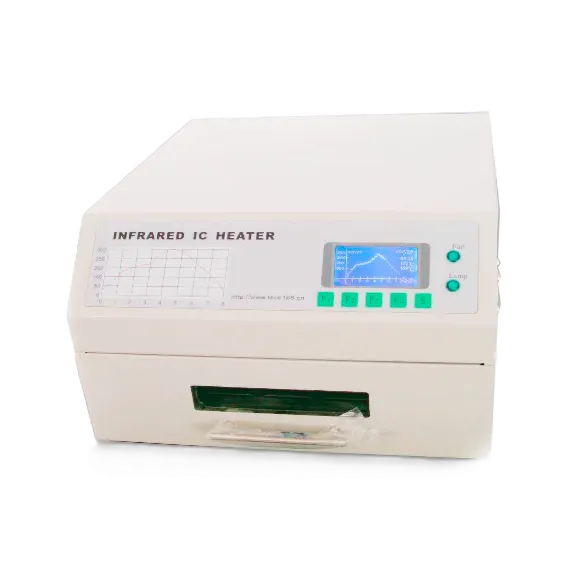 The INFRARED IC HEATE T962 A is a micro processor controlled reflow-oven. It can be used for effectively soldering various SMD and BGA components.The whole soldering process can be completed automatically and it is very easy to use, This machine uses a powerful infrared emission and circulation of the hot air flow, so the temperature is being kept very accurate and evenly distributed.